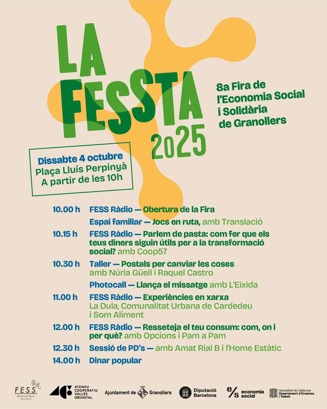 04/10/2025Lloc: Plaça Lluís Perpinyà Horari: 10 - 20 HOrganitza: Fira d' Economia Social i Solidària Imatges:
