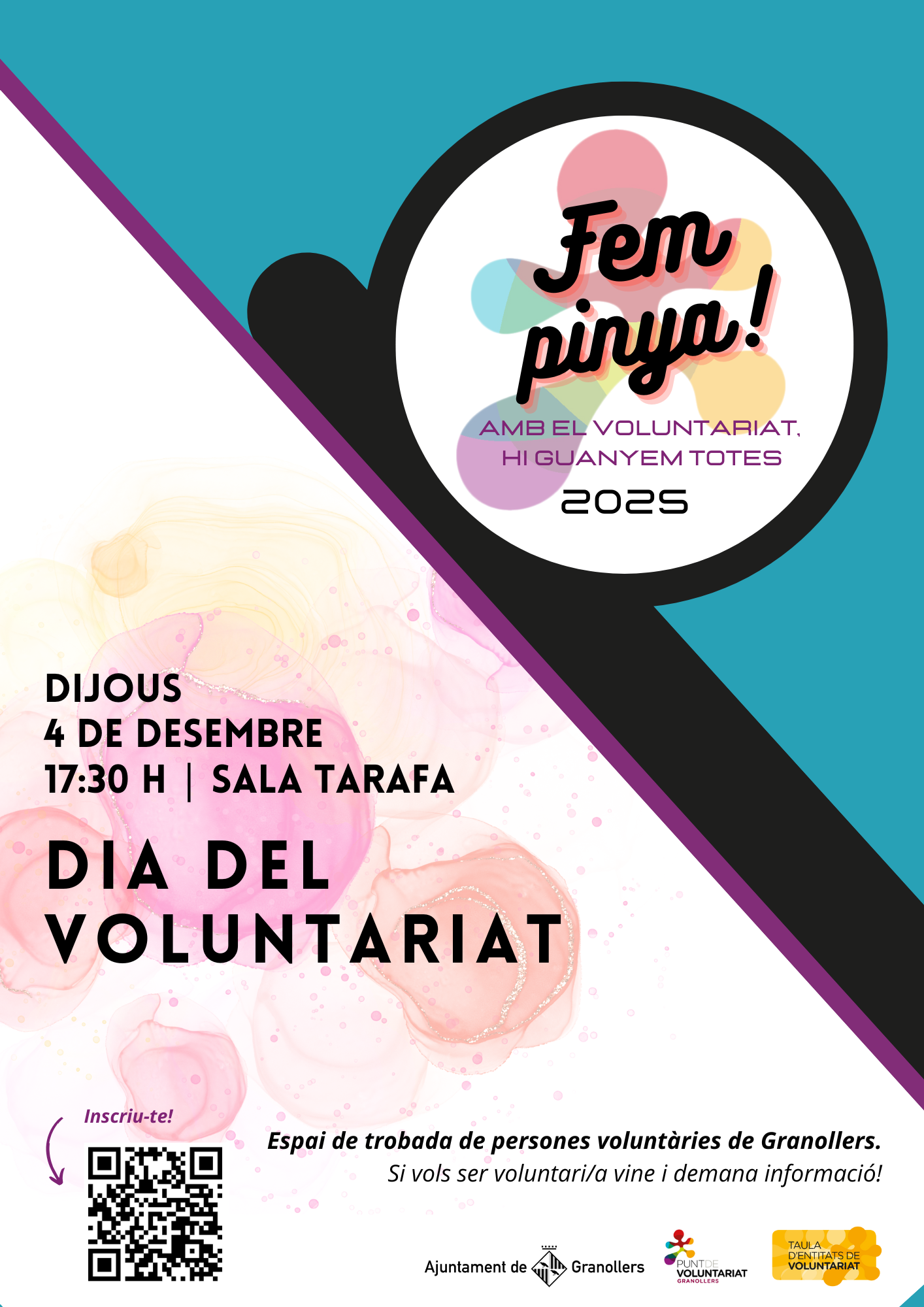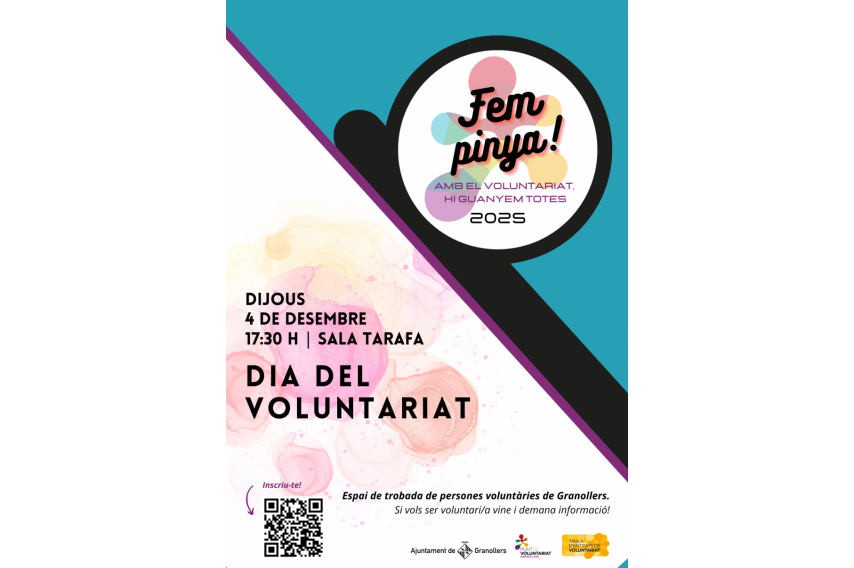 Enguany se celebrarà el Dia de Voluntariat amb un acte de celebració i cohesió a la Sala Tarafa dijous 4 de desembre. Pretén ser una trobada dirigida principalment a les persones voluntàries de les entitats de voluntariat de Granollers, tot i que si alguna persona interessada en voluntariat vol assistir-hi, ho podrà fer. En aquest cas, hi haurà informació sobre el voluntariat a la ciutat i podrà conèixer persones vinculades als diferents projectes que realitzen acció voluntària al territori.